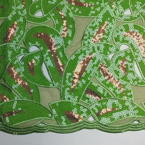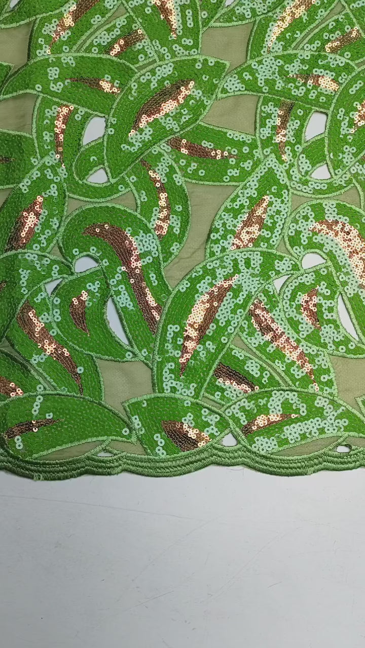 Metallic sequins follow the contours of every loop—primary lines shimmer in matte embroidery, while secondary highlights of holographic dots catch and glow in every direction.